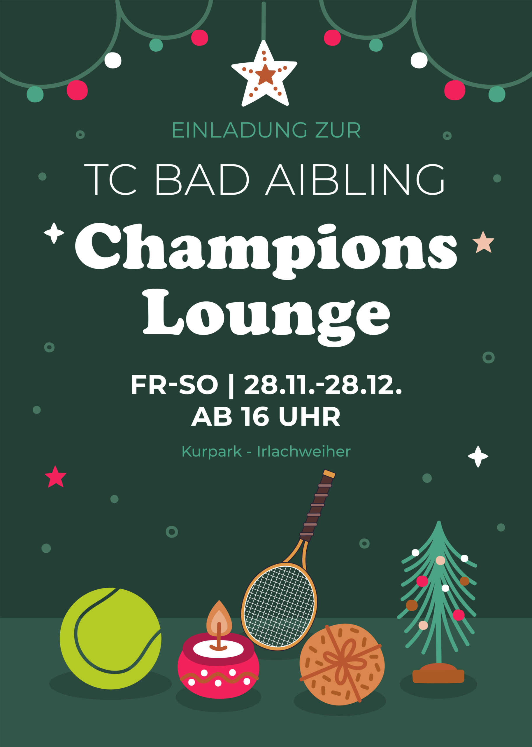 Am kommenden Wochenende (28./30.11.2025) starten wir wieder mit unserer Champions Lounge in die Adventszeit. Heuer heißen wir euch an allen Wochenenden bis zum 28.12.2025 jeweils Freitag, Samstag und Sonntag ab 16:00 recht herzlich willkommen!